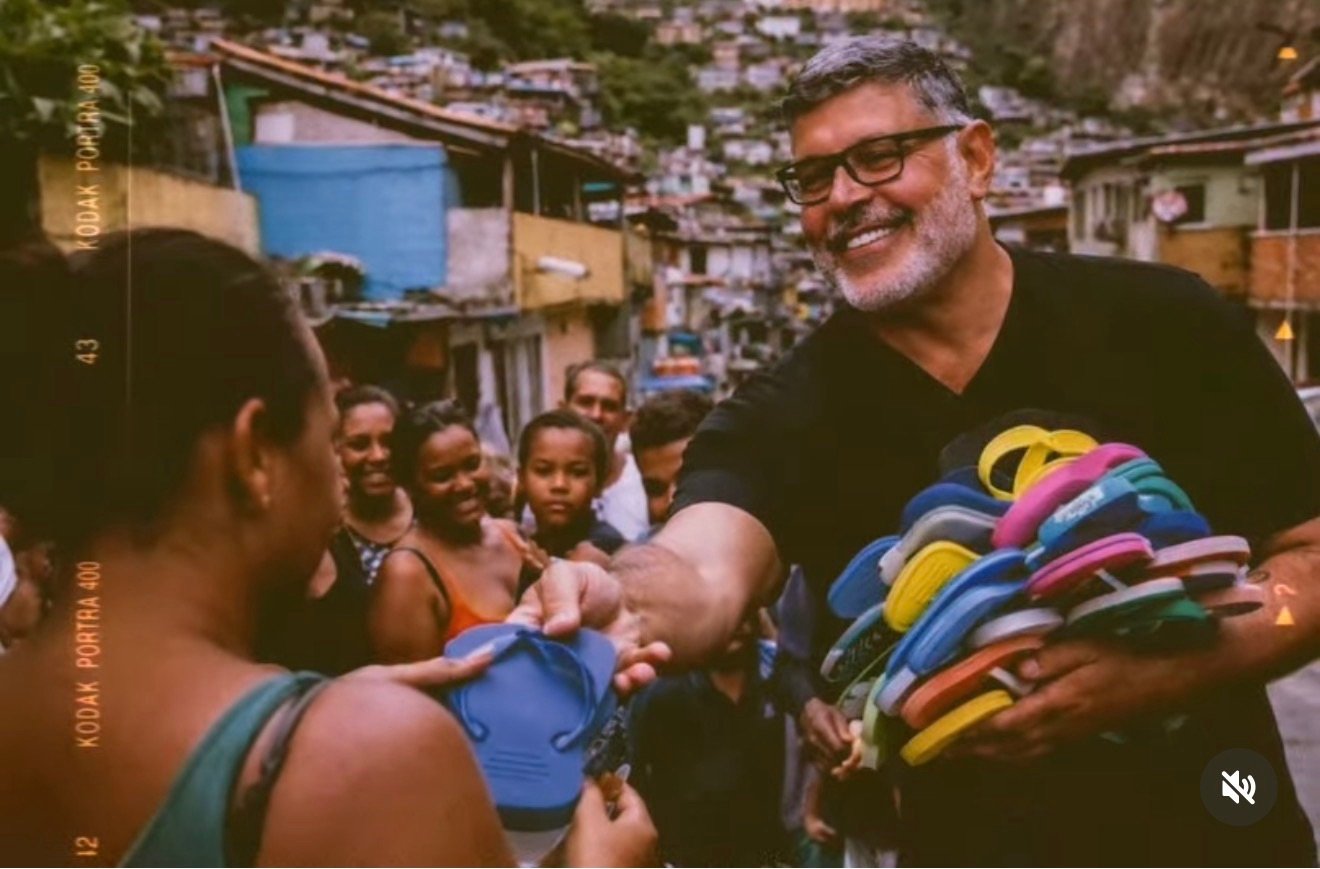 Alexandre Frota recolhe Havaianas descartadas e doa chinelos a pessoas carentes