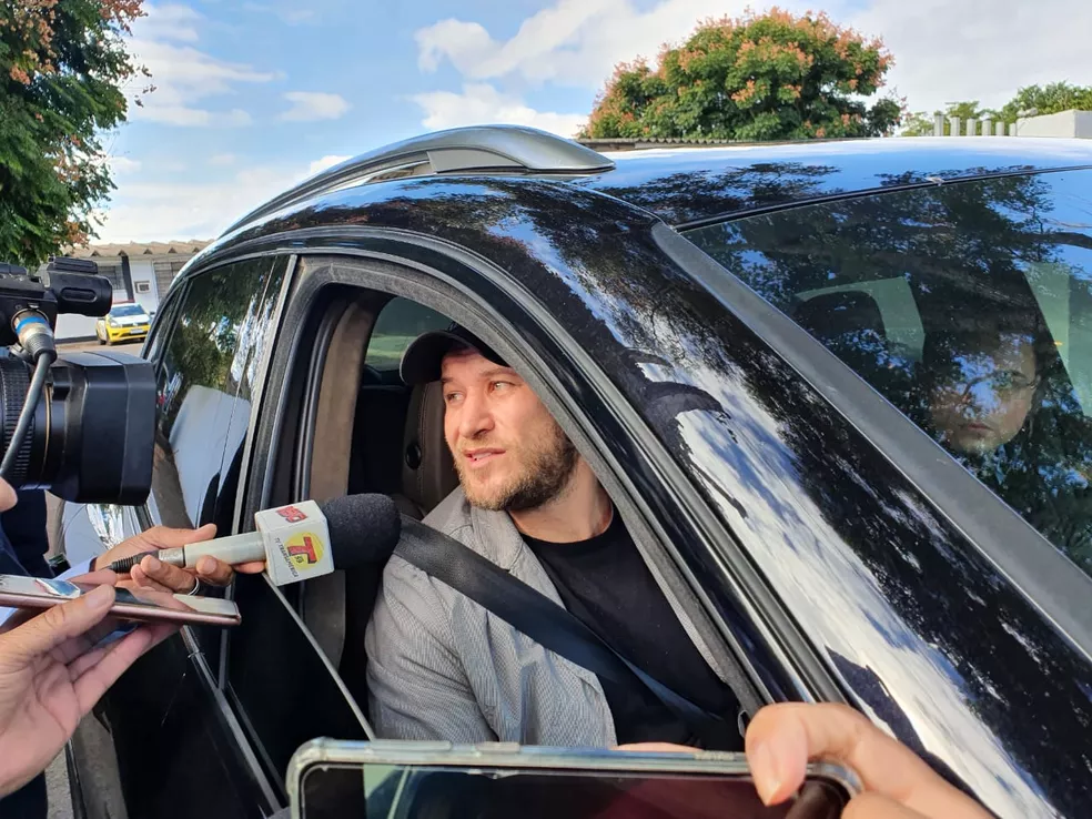 Ao sair da delegacia, por volta de 9h, Diego disse carregar uma “arma não municiada” devido à falta de segurança no município: