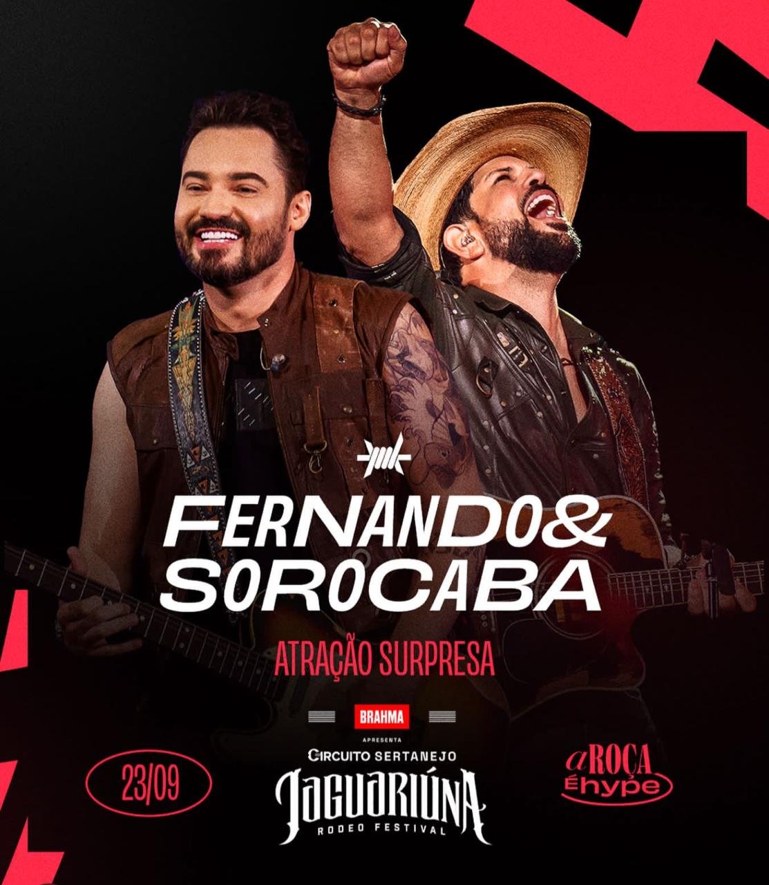 Os fãs de sertanejo têm mais um motivo para comemorar! Às vésperas do primeiro dia de evento, o *Jaguariúna Rodeo Festival* anuncia mais uma novidade para o público. A dupla *Fernando & Sorocaba& chega para somar ao line-up das apresentações de sábado, 23 de setembro, e promete agitar o público com hits como “Madri” e “A Galera do Chapéu”.