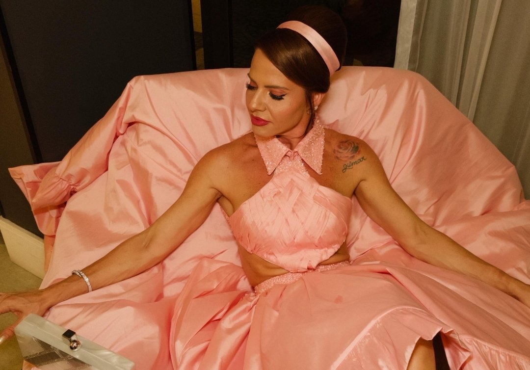 No Baile da Vogue, Karen Lopes brilhou em um figurino que celebra a fusão entre passado e futuro. Inspirado nas formas icônicas do New Look de Dior, o look resgata a elegância estruturada da década de 40, reinventando-a com um toque contemporâneo.