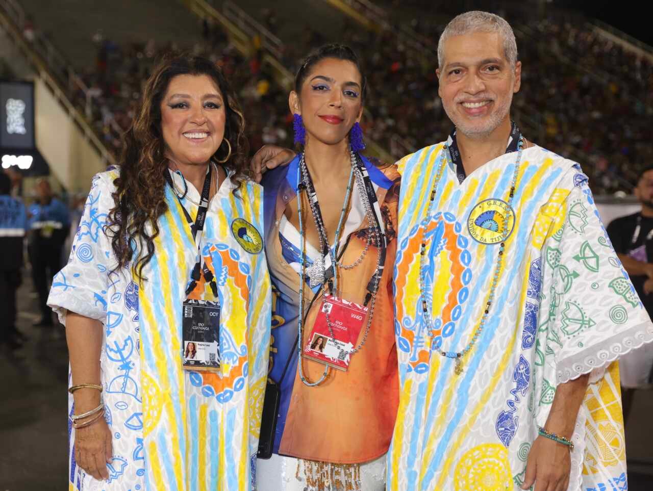 Regina Casé acompanha o marido, compositor do samba-enredo da Tijuca, em desfile