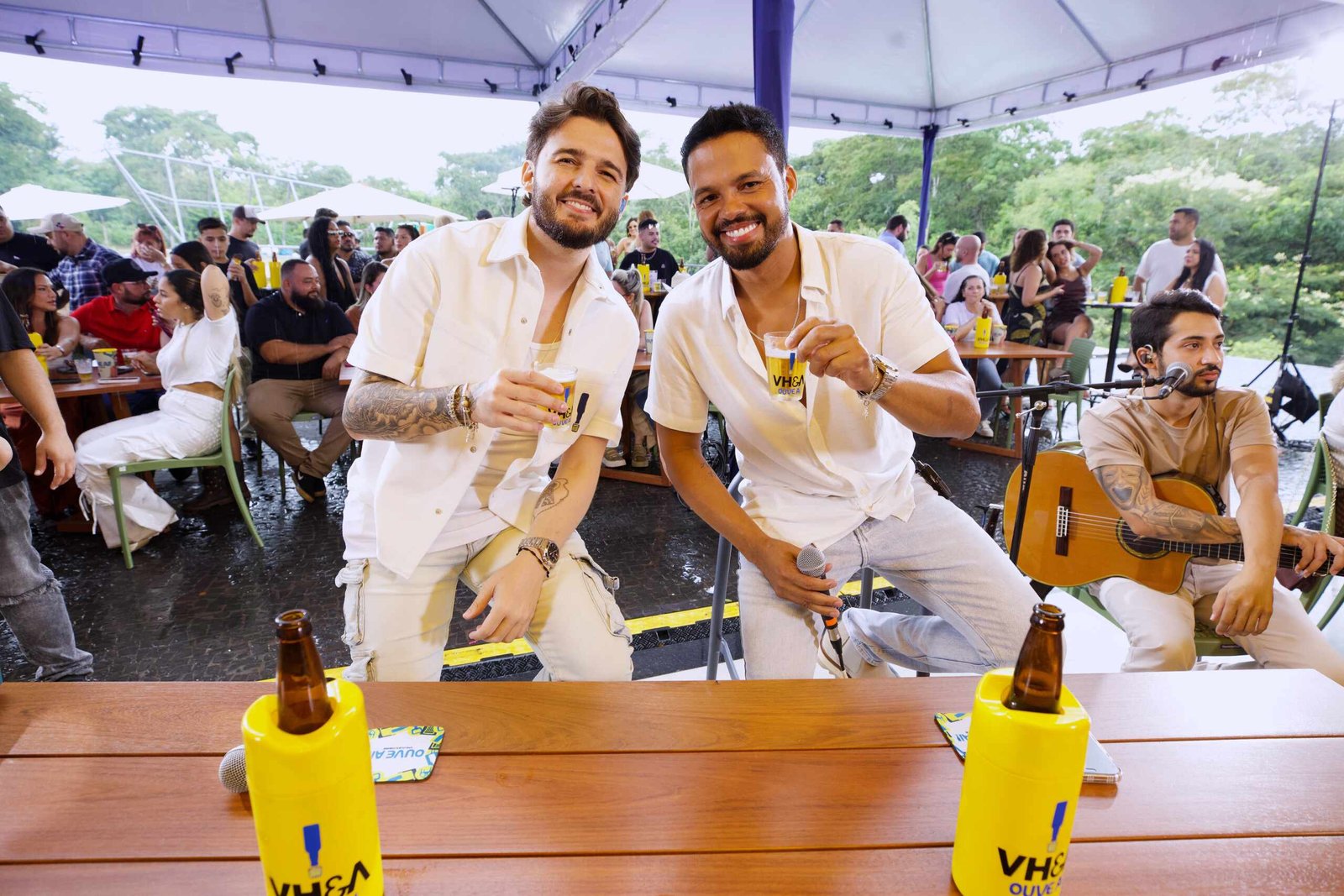 VH e Alexandre gravam audiovisual “Ouve Aí” no Espaço Vinny BBQ, em Goiânia